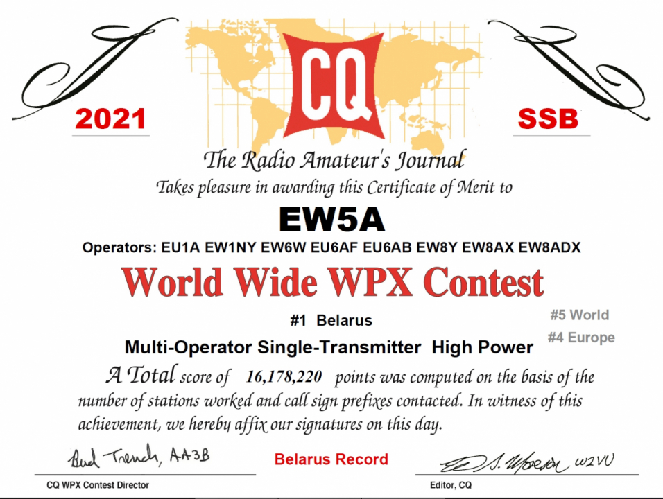 | 27-03-2021 | CQ WW WPX 2021 SSB | MULTI-SINGLE | 17844550 | 5149 | 1475 | 16178220 | 0 | 0 | 1 | 4 | 5 | |