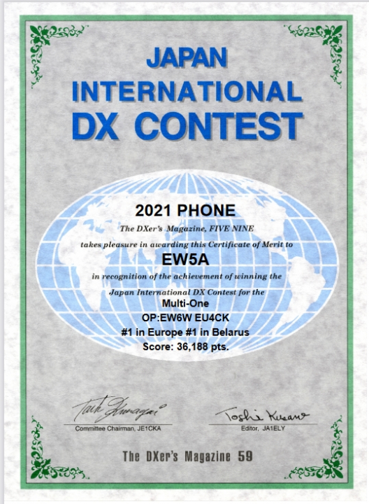 | 13-11-2021 | Japan International DX Contest (SSB) | MULTI-SINGLE | 36384 | 300 | 104 | 36188 | 0 | 0 | 1 | 1 | 2 | |