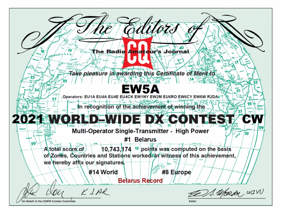 | 27-11-2021 | CQ WW CW 2021 | MULTI-SINGLE | 12135750 | 7494 | 825 | 0 | 0 | 0 | 1 | 8 | 14 | |